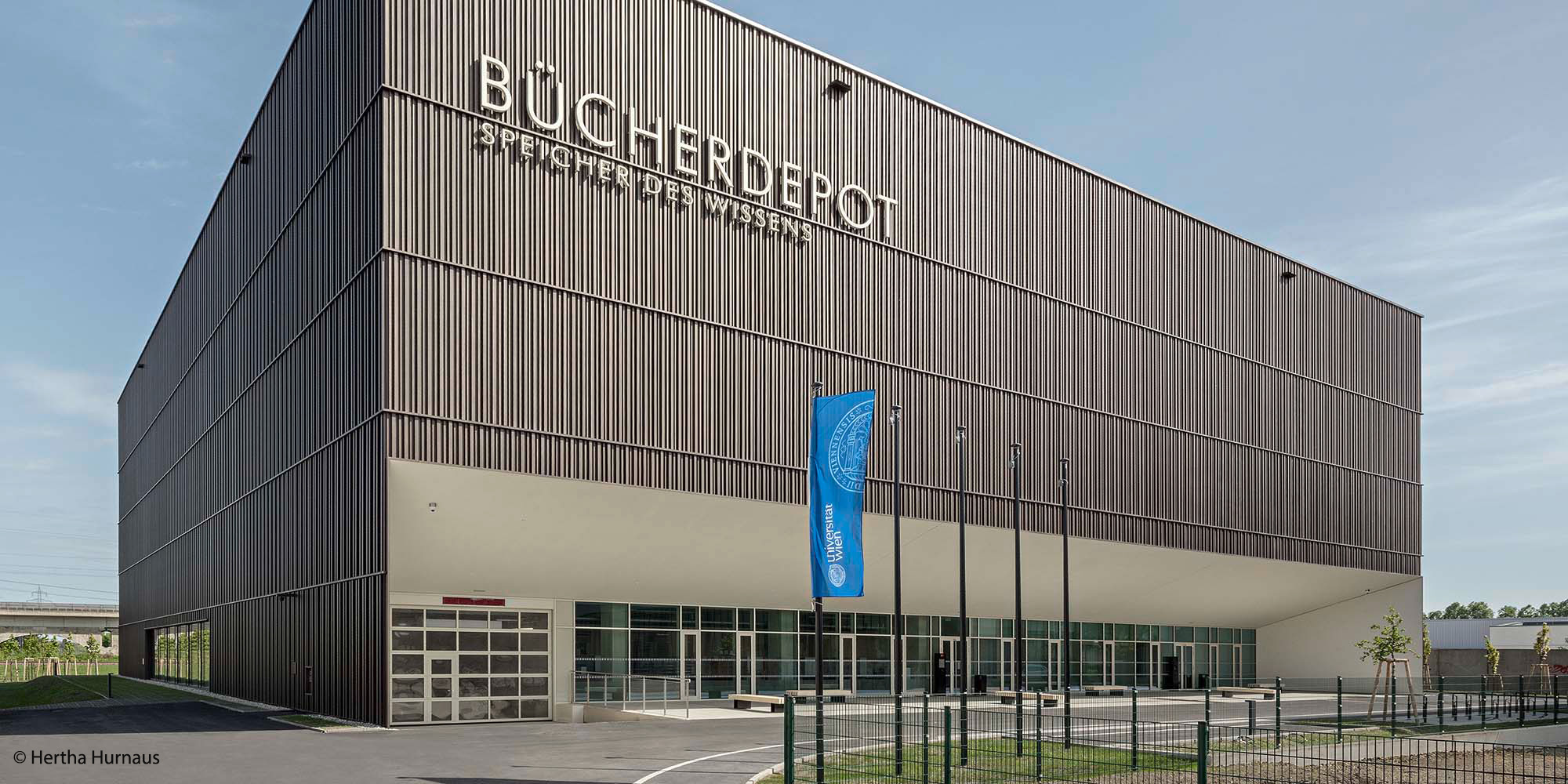 Mehr...Entwurfstext: Das neue Bücherdepot als wichtiges Nutzgebäude und „Lager des Wissens“ für die Stadt Wien wird durch eine einfache Formensprache definiert. Der kubische Baukörper steht als Solitär zentral am Bauplatz und ist in seiner klaren Form identitätsstiftend und Landmark zugleich. Die umlaufende alleeartige Bepflanzung sowie die Fassadenbegrünung des Baukörpers, sind bewusst inszeniert und Teil der städtebaulichen Idee. Dies bettet den Solitär im Umfeld harmonisch ein. Wesentliches architektonische Element ist der über die gesamte Südseite 2 – geschossige vertiefte „Eingangstrichter“. Er stellt eine unverwechselbare Geste der Einladung dar, ermöglicht klare Orientierung und lädt durch eine anregende Vorplatzgestaltung zum Verweilen ein. Ein Ort der Ruhe entsteht.